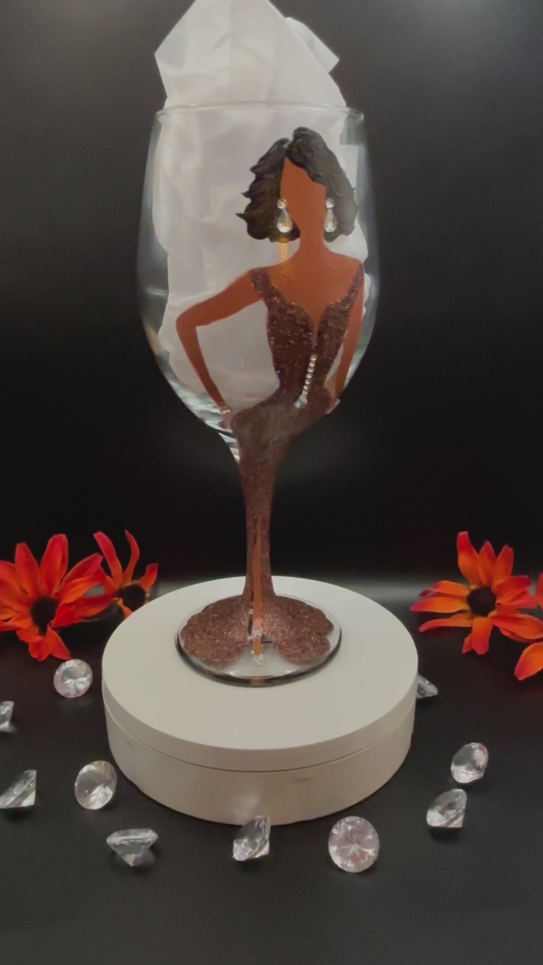 "Embrace your inner diva with this Diva in this Bronze Dress! Perfect for adding a touch of elegance to your drinkware collection. So raise a glass and feel divine with this Diva design!"