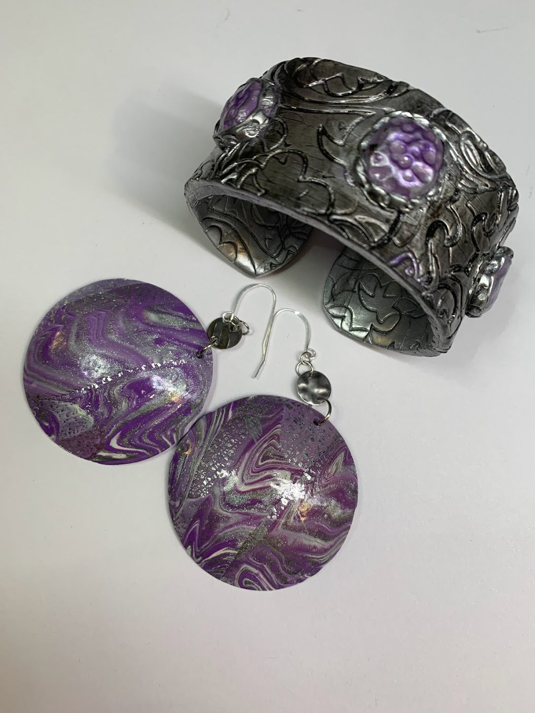 Polymer Clay Earring and Bracelet Purple Haze Cuff Set